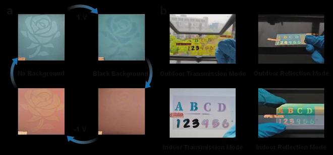 这种具有透明-反射双模式的彩色全固态ECDs,可使用室内和室外两种不同场景下的显示。同时,基于多层膜堆叠结构使得该器件具有成本低、可扩展性强的优点,适合大规模生产。